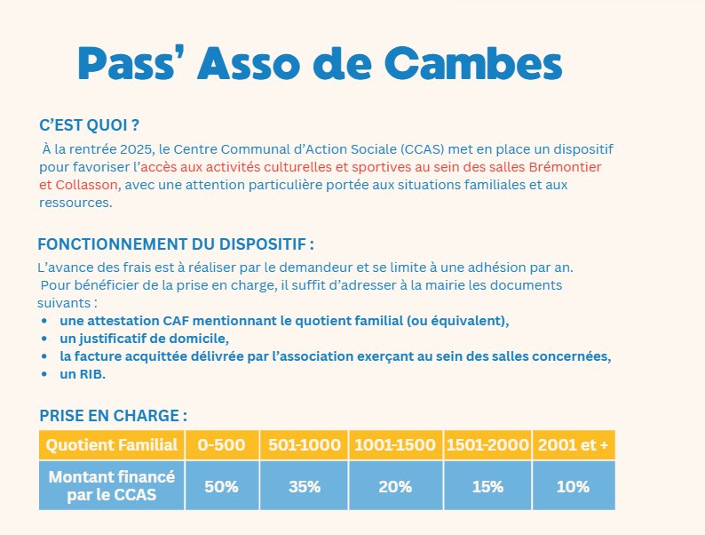 À la rentrée 2025, le Centre Communal d’Action Sociale (CCAS) met en place un dispositif pour favoriser l’accès aux activités culturelles et sportives au sein des salles Brémontier et Collasson, avec une attention particulière portée aux situations familiales et aux ressources.
