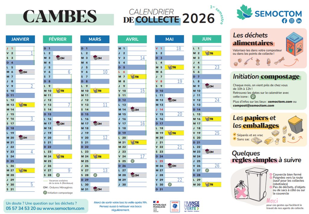 Le nouveau calendrier de ramassage des poubelles du SEMOCTOM est désormais disponible :