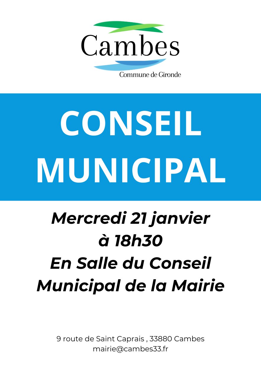 Nous vous informons de la tenue du prochain Conseil Municipal de Cambes qui se tiendra :